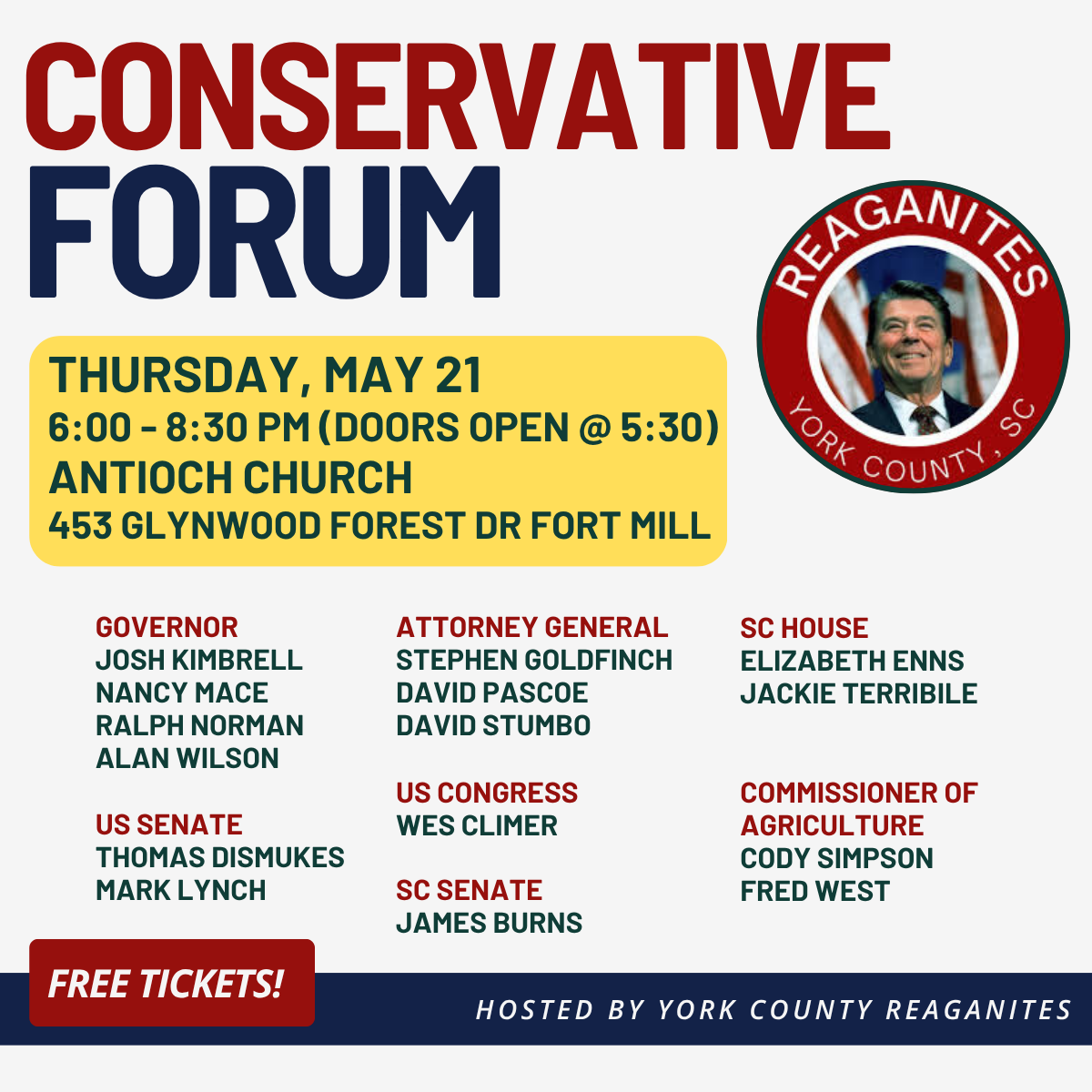 Join us for an important evening focused on the future of our state at the Conservative Forum, hosted by the York County Reaganites. #YorkCountyUnited!